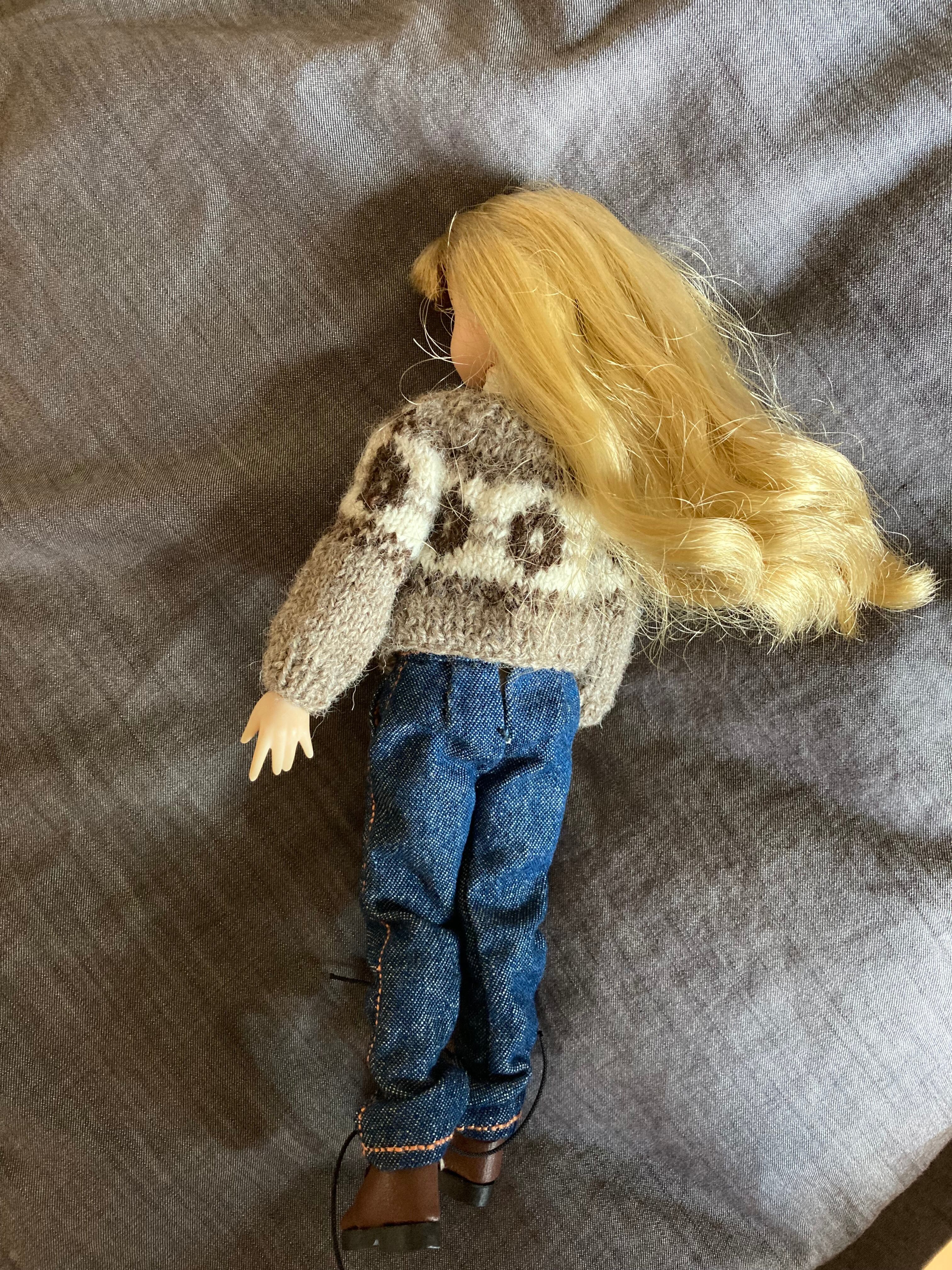 編み込み模様のため、裏に糸が渡っており、ドールの腕が通りにくい場合がございます。